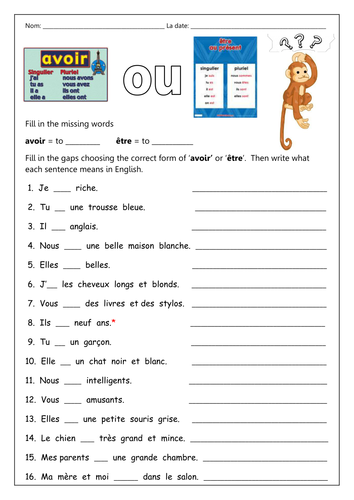 images of free 1 french for grade worksheet ou Resources labellaroma présent au Avoir by être Teaching high quality jpeg wallpaper download